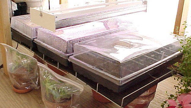 The wire grid holds the flats 1 1/4 inches above the mat. The surface temperature of the mat ranges from about 15 to 20 degrees F above room temperature. It's a little tricky on sunny days, so I added a timer. Now the heat mat is only on from 5pm to 11am. I use this from December through March to germinate seeds. I also set my Geranium cuttings near by to take advantage of the radiant heat. A grow light is suspended above to assist germination during the grey cloudy winter days.