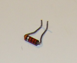 pre-tin the short 90 degree bend portions of the resistor - with a light coating of solder. The resistor above is upside-down from the orientation in which it will be installed.