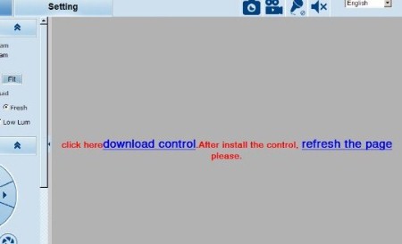 192.168.1.110 (this may be different if the camera model is not exactly the same as the one I have). After entering "admin" for both log-in fields... you should see the Viewer/Control Screen on your computer. If you have live video showing on the screen, skip to the next step. If you don't have live video on the screen, and instead have this gray box showing: