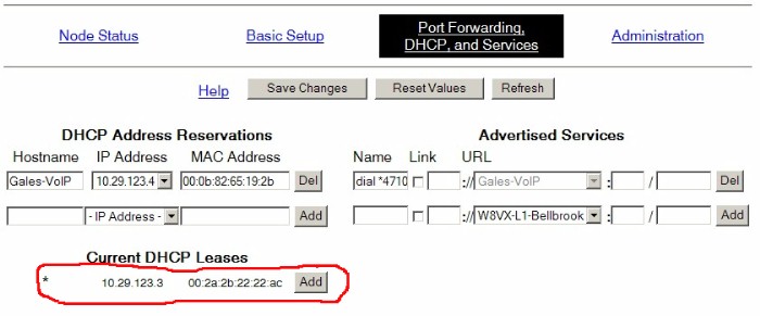* Click on the "Port Forwarding, DHCP, and Services" tab in the upper right region of the Setup screen.