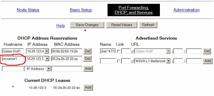 * Click on ADD to the right of this, and the cam will appear in the DCHP Address Reservations... just above it. THIS IS WHERE you can give it a different HostName (note: hostnames in this field can not contain spaces between words).