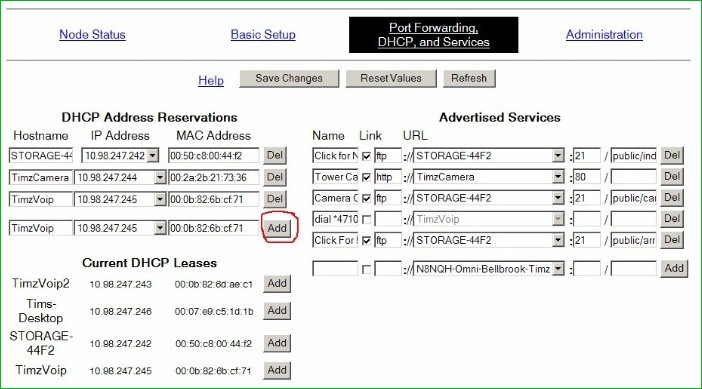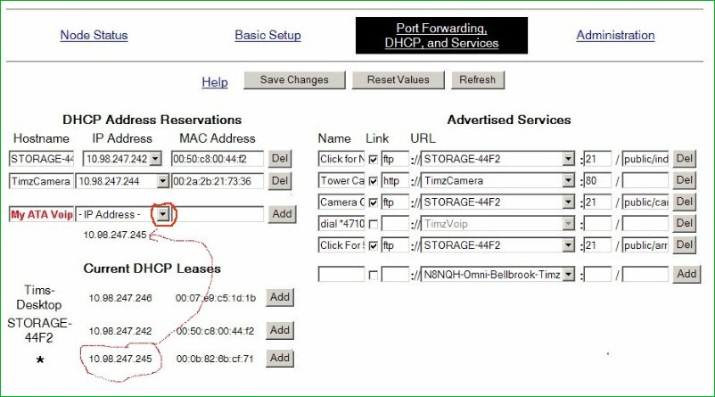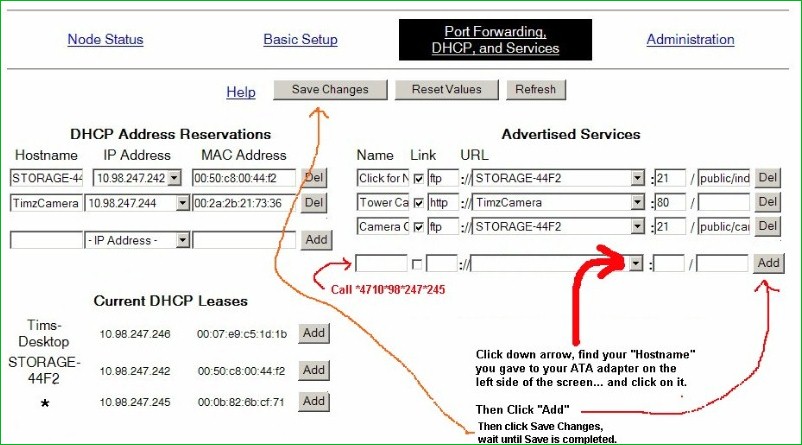 *over on the right half of the screen "Advertised Services", go to the bottom of one that is blank. Under "Name" type in "Call" space, and then your ATA adapters IP address, but add *47 to the beginning of it: yours will be slightly different than the one shown. Replace the "dots" (periods) in the IP address with " * " as shown; (star)4710(star)98(star)........