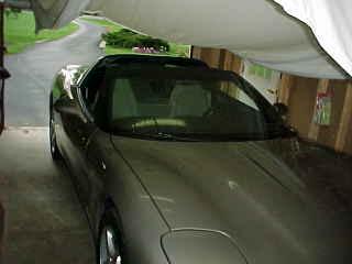 Here is the cover all the way down onto the '02 taken from the front passenger side of the car. My garage is small and it was difficult to get wide angle pics: