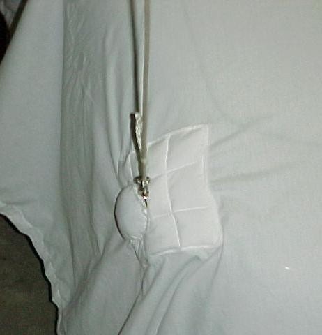 Here is a closeup detail of the attachment point. The small pouch holds a 3/4 lb. weight; all well padded.