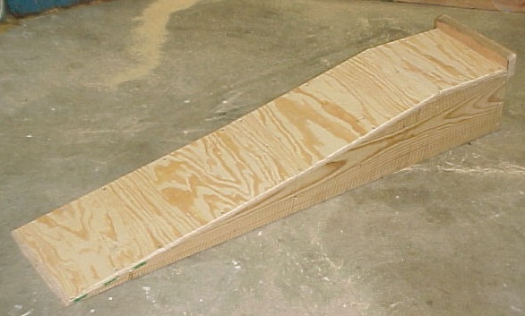 Hey, I am a cheap guy. I was in the market for car ramps for my Corvette but didn't like what I found, nor did I like the prices either. So I decided to make a set. Through my measuring I found that the maximum rise angle for my non-lowered standard suspension 2002Corvette Coupe was 9 degrees. But I also found that once the front wheels were elevated 4.5", it could tolerate a 15 degree rise.