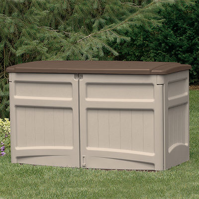 SunCast Horizontal Shed (deck box) GS1000B http://www.acehardware.com (free shipping if shipped to your local store).