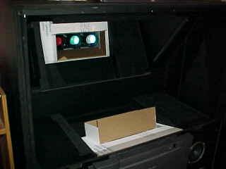 Many have reported internal reflections causing halos around bright objects (lenticular-fresnel halo), and hot spots on the screen. To reduce these reflections, there seems to be two things that work. One is lining the entire video cavity (behind the screen) with Duvetyne fabric... a blacker than black cloth that does not reflect light at all; or the other option is to build a lens hood that blocks the three lenses from having direct view of the screen. Since my 56X81 is still under warranty, I was a little hesitant to glue the fabric permanently to the inside of the video box,. Since most reported the lens hood as having the most positive effect, I opted for this "lay-in" hood that is easily removable. The goal of the lens hood is to prevent light reflected from the screen from re-entering the lens system, while still letting the light from the lenses reach the mirror.