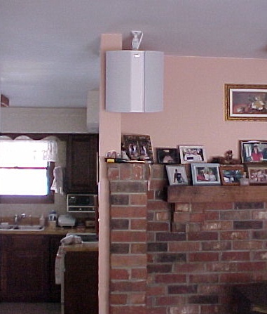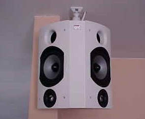 with the grille removed, revealing the "bipole" design. Since I had to mount these higher than I wanted to, I decided to invert them; placing the tweeter level closer to where they should be.
